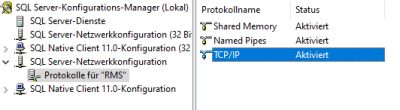 In einer benannten Instanz einer SQL-Installation (z.B. SQLEXPRESS) muss hier ein Port festgelegt werden.