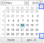 Mit den grauen Schaltflächen kannst du auch wochenweise den Kalender verschieben, um so z.B. einen monatsübergreifenden Zeitraum auszuwählen.