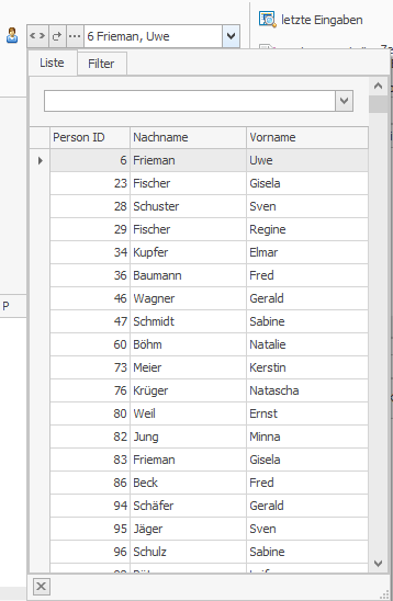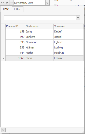 In vielen Modulen kommt der Personen-Control zum Einsatz. Mit ihm kann man eine einzelne Person aufrufen, bzw. durch die Personen blättern.