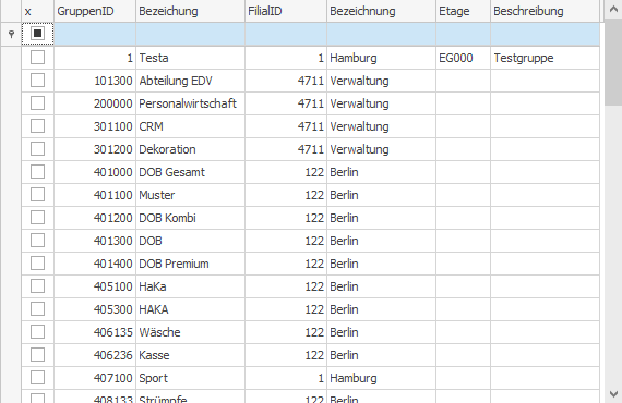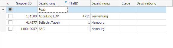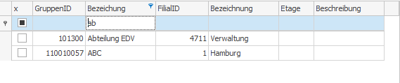 Die oberste Zeile ist die „Autofilter“-Zeile, d.h. wenn Du hier in einem Feld eine Eingabe machst, dann wird die Tabelle danach gefiltert, in diesem Fall alle Zeilen, bei denen die Bezeichnung mit 'ab' beginnt: