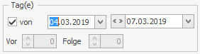 Bei den Tagen kannst du alternativ zu Vor- und Folgezeiträumen auch ein von- und bis-Datum wählen: