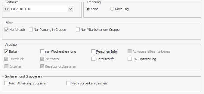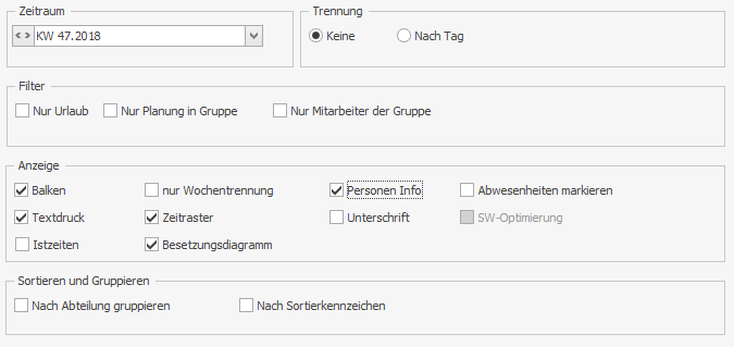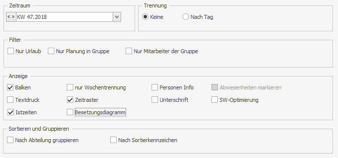 Nach Sortierkennzeichen: Wenn aktiviert, dann wird die Planung nach dem Sortierkennzeichen sortiert, sonst nach Namen.