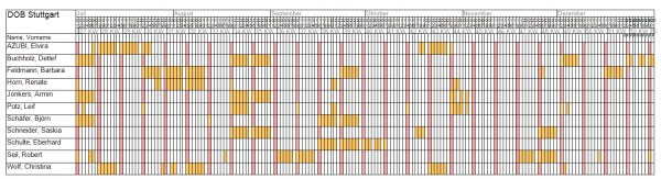 SW-Optimierung: Druckt zusätzlich zum Balken auch Abkürzungen, wie U bei Urlaub, um auch auf SW-Druckern gut lesbare Ergebnisse zu ermöglichen.