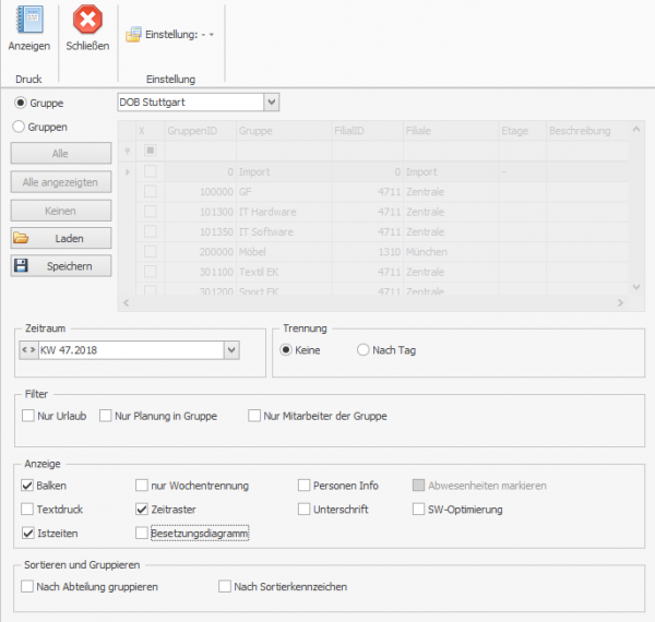 nur Mitarbeiter der Gruppe: Es werden nur die Mitarbeiter geladen, die per Stammdaten der Gruppe zugeordnet sind. Springer aus anderen Gruppen werden nicht geladen.