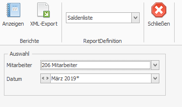 Erstellt eine Liste mit den Salden und Veränderungen innerhalb des Zeitraums für einen oder mehrere Mitarbeiter. In der Liste ist die Veränderung des Zeitsaldos oder des Stundensaldos abzulesen.