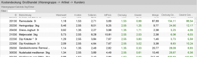 Diese Statistik zeigt, gemessen an den Kosten im Großhandel ein Artikel für eine Kostendeckung sorgt. Es soll die Frage beantwortet werden, ob ein Artikel vielleicht keinen Gewinn erwirtschaftet, aber dennoch Kosten auffängt.