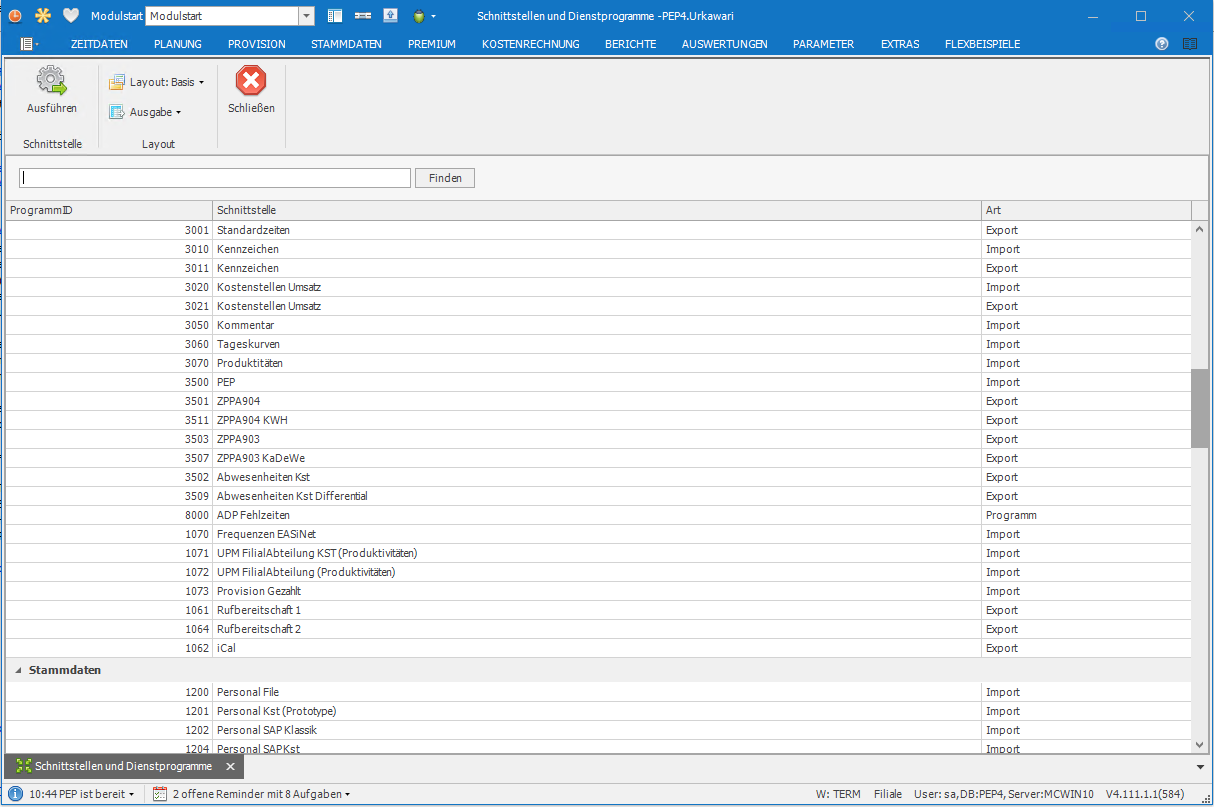 Über das Modul Schnittstellen kannst du Schnittstellen und Programme manuell starten. Die Beschreibung der Schnittstellen findest Du hier.