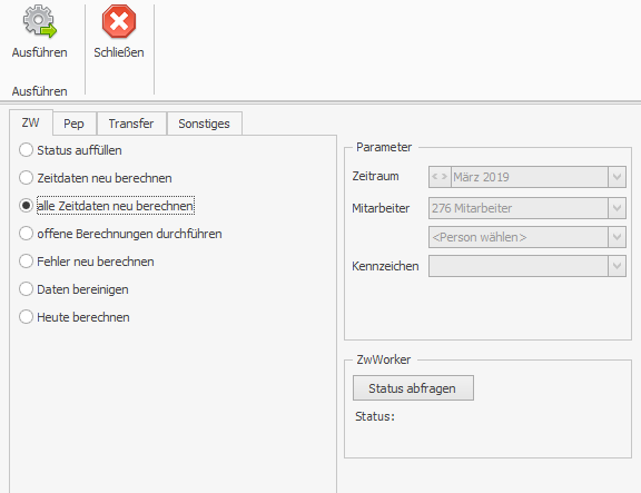Die Status-Tabelle wird i.d.R. vom ZwWorker um Mitternacht automatisch aufgefüllt. Hier kann der Prozess manuell gestartet werden.