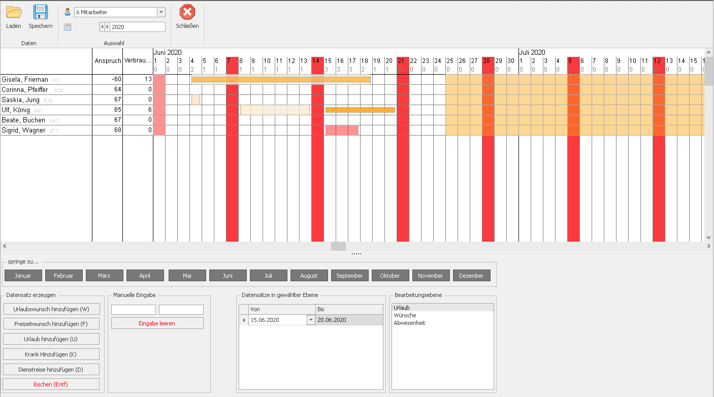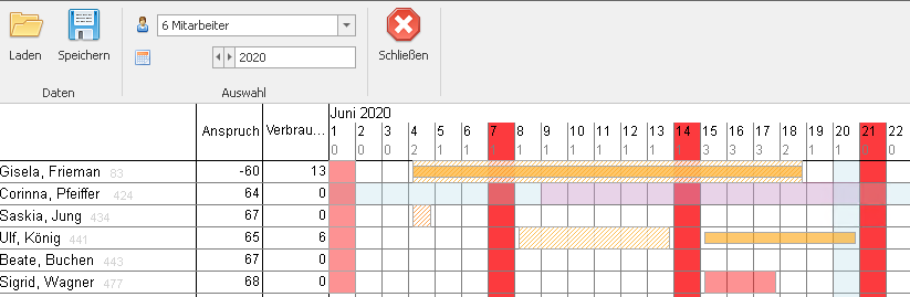 Im Jahresplaner siehst Du dann die Personen mit Anspruch und verplantem Urlaub.