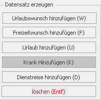 Alternativ zum Klick kann man auch den Buchstaben eintippen, z.B. W für den Urlaubswunsch.