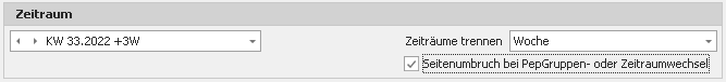 Wähle den Zeitraum aus, der gedruckt werden soll. Wenn ein großer Zeitraum automatisch aufgeteilt werden soll, dann kannst zu Zeiträume trennen. Mit der Option Seitenumbruch kannst du zwischen den Zeiträumen oder Gruppen einen Seitenumbruch einfügen.