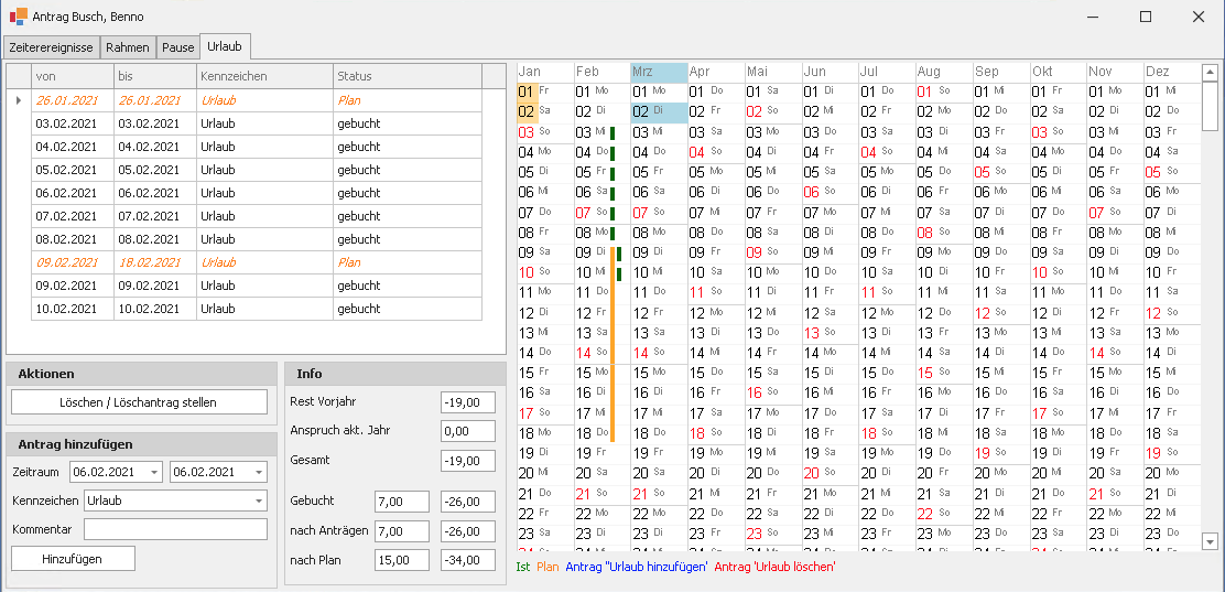 Einen Antrag aus der Pep heraus zu stellen ist jetzt schöner geworden: Auch bei hohen Skalierungen von Windows ist der Dialog lesbar - aber der Urlaubsantrag hat eine Menge neuer Funktionen bekommen: Mit der Maus kann man nun Daten direkt im Kalender markieren, und in der Tabelle machen Formate und Farben die Daten übersichtlicher.