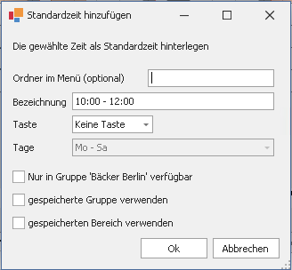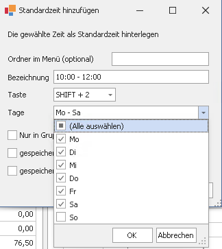 Neu hinzugekommen ist die Option, dass in der Standardzeit auch die Gruppen gespeichert und verwendet werden. z.B. morgens Gruppe „GF“ und Nachmittags im Verkauf.