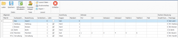 Region | Ordnet die Filiale einer Region zu (verwendet z.B. im PIV) |