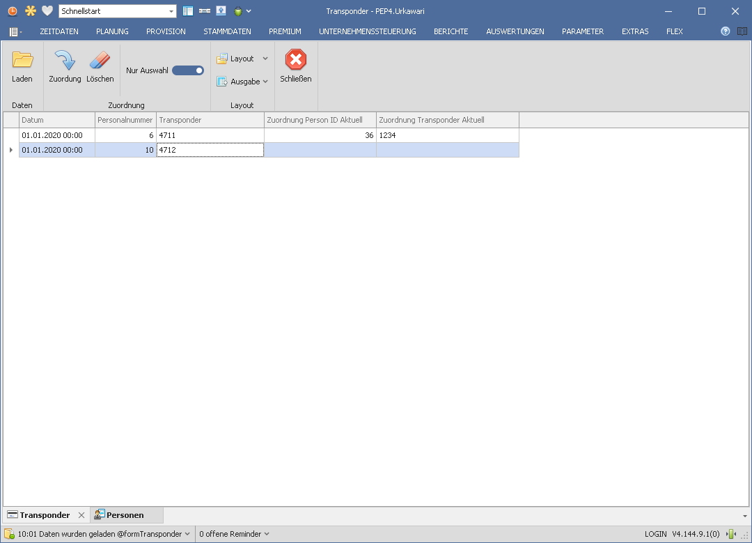 | Zuordnung PersonID aktuell | zeigt, wem der Transponder aktuell zugewiesen ist |