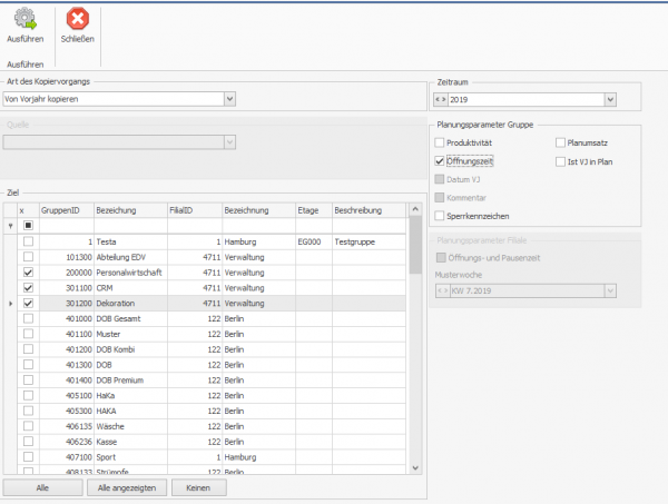 Öffne das Modul Parameter kopieren und wähle dazu den Kopiervorgang Von Vorjahr kopieren.