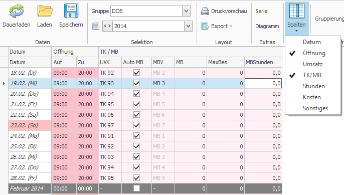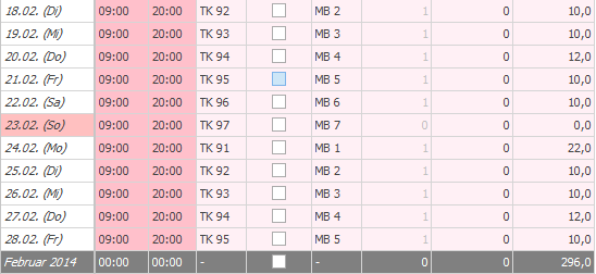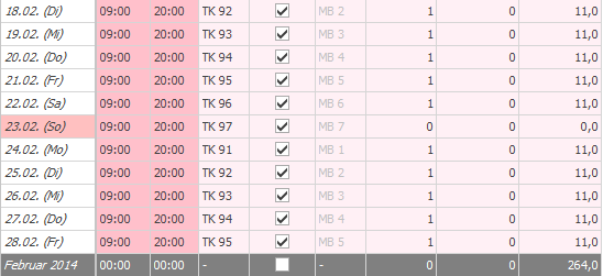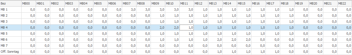 In dem Beispiel wird für alle Tage die Mindestbesetztung auf 1 gesetzt. Alternativ kannst Du auch in der Summenzeile das Feld AutoMB aktivieren. Automatisch wird das Feld in allen Zeilen gesetzt.