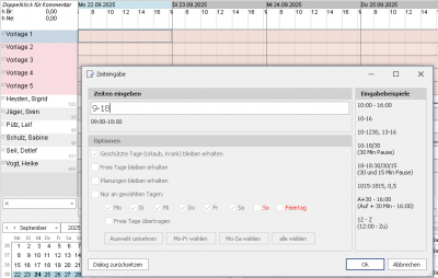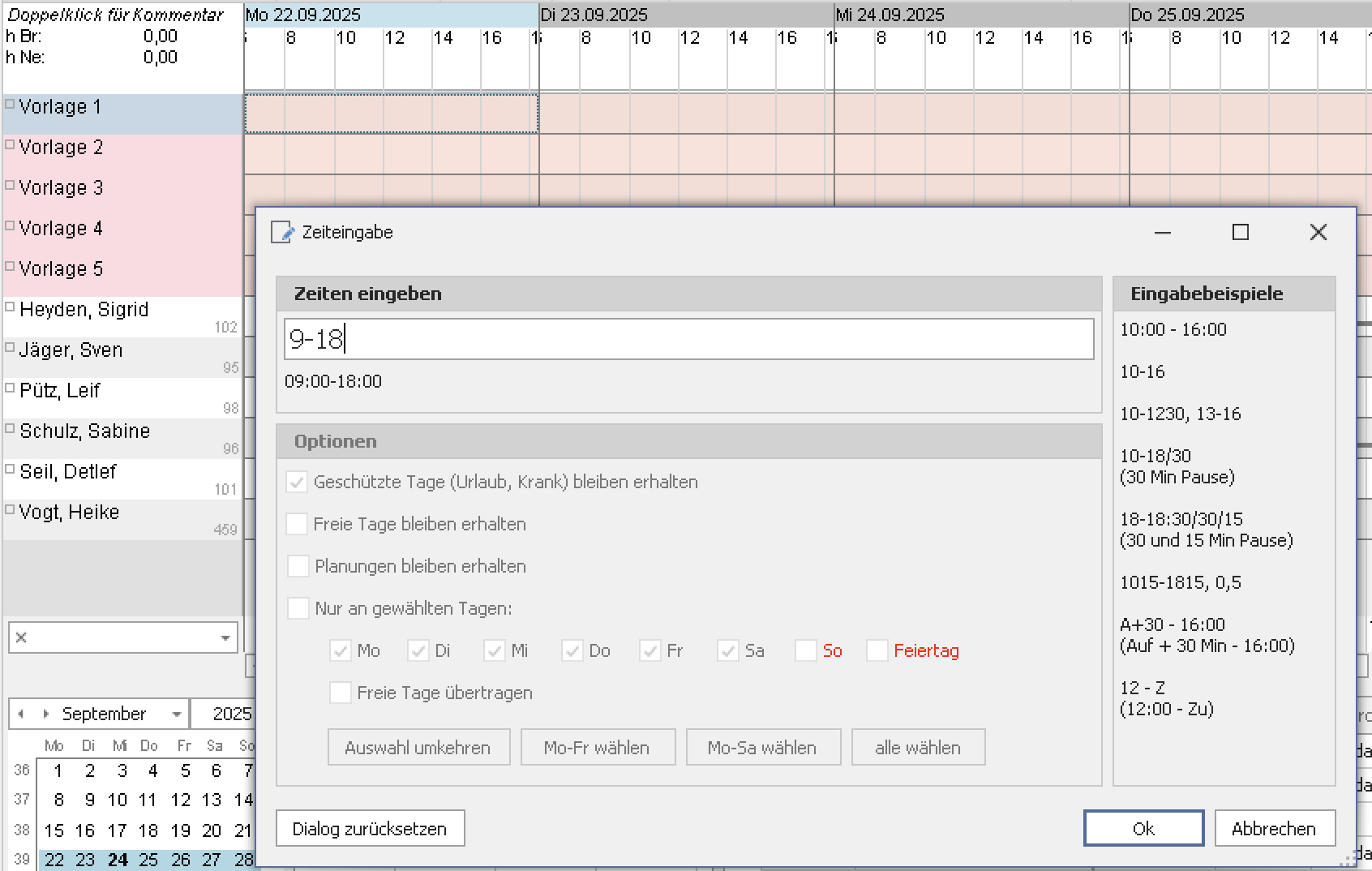 Du kannst vorab einzelne Positionen manuell planen und anschließend die Automatik starten. In diesem Fall werden nur die noch offenen Positionen automatisch verplant.
