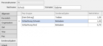 Schritt 3: Mitarbeiter qualifizieren Damit die automatische Planung funktioniert, musst du festlegen, welche Mitarbeiter für welche Sonderaufgaben geeignet sind. Weise den Mitarbeitern, die der PEP-Gruppe zugeordnet sind, die entsprechenden Aufgaben zu. Optional kannst du die „Leistung“ (Nettofaktor) der Mitarbeiter festlegen, um z. B. anzugeben, dass ein Mitarbeiter für eine Aufgabe in einer bestimmten Gruppe besser geeignet ist als in einer anderen.