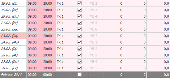 In der PEP sieht man dann, dass an allen Tagen die Kurve hinterlegt ist; die unterschiedliche Höhe der Bedarfsdiagramme resultiert aus den unterschiedlich hohen Stundenbudgets der Tage.