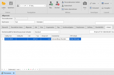 Hier ein paar Probleme rund um den Urlaub. In der Regeln kann man die Ansprüche von Urlauben schnell in Stammdaten Personen / Register Urlaub anpassen.
