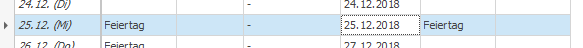 Du siehst, dass dem 24.12.2019 als Referenz der 25.12.2018 zugewiesen ist, da beide Tage ein Dienstag sind. Da Du aber den 24. mit dem 24. vergleichen willst, überschreibst Du einfach das Feld. Wie Du siehst, verschwindet direkt auch der Hinweis auf den Feiertag im Vorjahr: