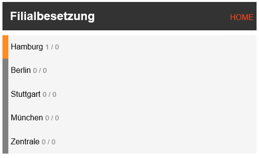 Linksseitig geben Farbindikatoren eine schnelle Übersicht der aktuellen Besetzung, abhängig von der Einstellung BESETZUNG_INFO: