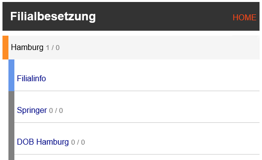 Übersicht über die Besetzung der Filialen.