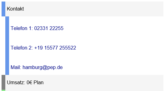 In der Konfiguration kann bestimmt werden, ob die einzelnen Passagen der Seite direkt angezeigt werden sollen, oder ob Sie ein- und ausklappbar angezeigt werden sollen. Dabei kann auch angegeben werden, wie der Status beim Öffnen der Seite sein soll.