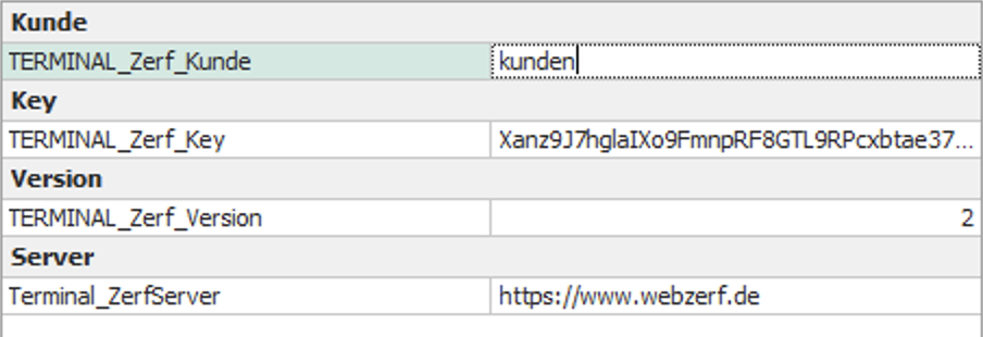 Version: Für die Nutzung von WebZerf2 muss hier eine 2 eingetragen werden.