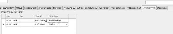 In den Stammdaten Personen kann man einstellen, dass Buchungen automatisch einer anderen Filiale zugeordnet werden. So kann z.B. bei einem Handwerker immer eingestellt sein, dass egal, wo er sich bucht, die Buchung automatisch der zentrale zugewiesen wird.