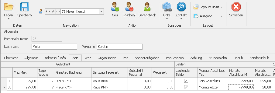 In Pep4 kann automatisch ein Monatsabschluss der Zeitkonten erfolgen. Sinn dieses Abschlusses ist die Kappung von Zeitsalden: